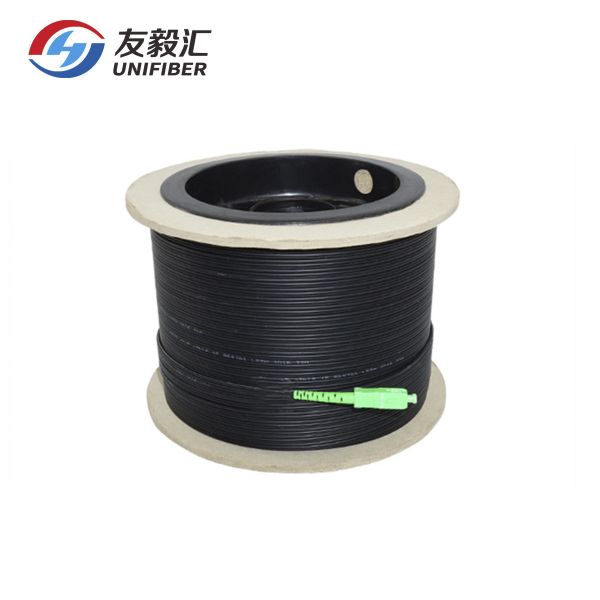 SC/APC FTTH Drop Fiber Optic Cable directly connected to their homes, their bandwidth, wavelength and transmission technology type are not restricted. The optical fiber unit id positioned in the centre. Two parallel strength member are placed at the two sides. A steel wire as the additional strength member is also applied ,then, the cable is completed with a black LSZH sheath.